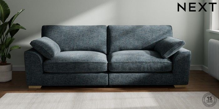 7.2.10 Stamford Grand Relaxed Sit 4 Seater Sofa Chunky Chenille Dark Navy Blue Large Square Angle - Light | Made Click here to use our website with more accessibility support, for example screen readers