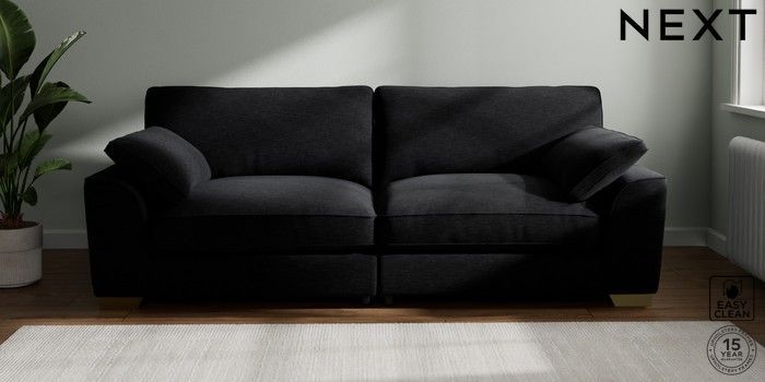 7.2.10 Stamford Grand Relaxed Sit 4 Seater Sofa Fine Chenille Easy Clean Black Large Square Angle - Brushed Brass | Made Click here to use our website with more accessibility support, for example screen readers