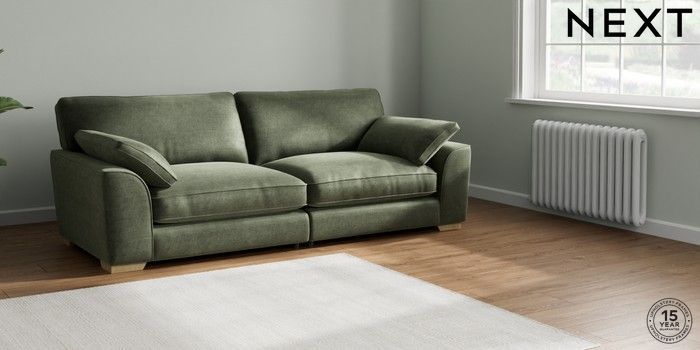 7.2.10 Stamford Grand Relaxed Sit 4 Seater Sofa Luxe Chenille Mid Green Large Square Angle - Light | Made Click here to use our website with more accessibility support, for example screen readers