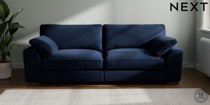 7.2.10 Stamford Grand Relaxed Sit 4 Seater Sofa Luxe Chenille Navy Blue Large Square Angle - Mid | Made Click here to use our website with more accessibility support, for example screen readers