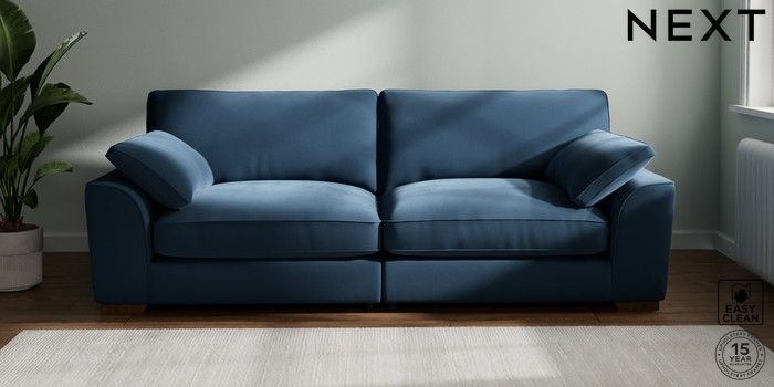 7.2.10 Stamford Grand Relaxed Sit 4 Seater Sofa Plush Velvet Easy Clean Airforce Blue Large Square Angle - Mid | Made Click here to use our website with more accessibility support, for example screen readers