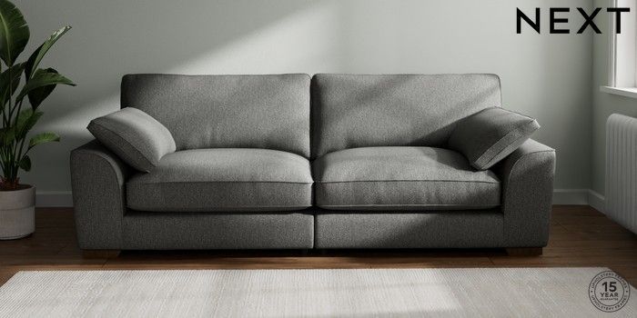 7.2.10 Stamford Grand Relaxed Sit 4 Seater Sofa Tweedy Chenille Dark Grey Large Square Angle - Mid | Made Click here to use our website with more accessibility support, for example screen readers