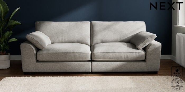 7.2.10 Stamford Grand Relaxed Sit 4 Seater Sofa Woven Chenille Easy Clean Light Grey Large Square Angle - Dark | Made Click here to use our website with more accessibility support, for example screen readers
