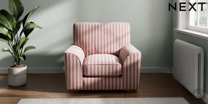 7.2.10 Stamford Grand Relaxed Sit Armchair Bold Chenille Stripe Dark Pink Square Angle - Mid | Made Click here to use our website with more accessibility support, for example screen readers