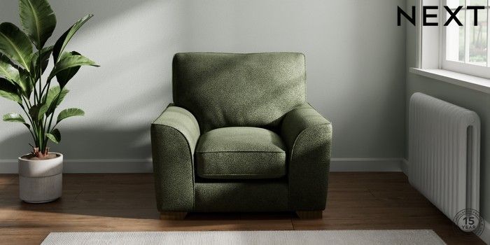 7.2.10 Stamford Grand Relaxed Sit Armchair Boucle Chenille Dark Moss Green Square Angle - Mid | Made Click here to use our website with more accessibility support, for example screen readers