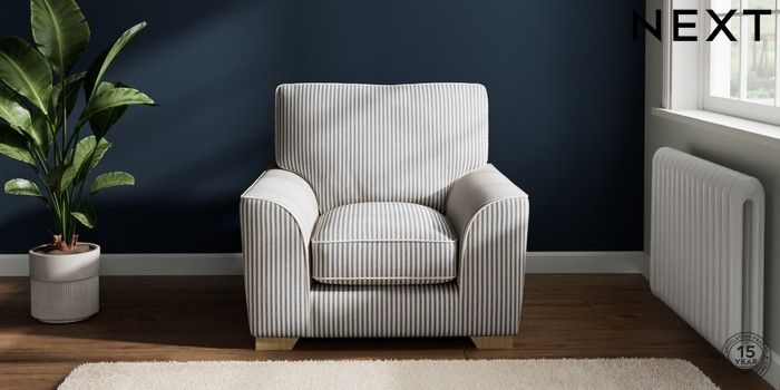 7.2.10 Stamford Grand Relaxed Sit Armchair Chenille Stripe Slate Blue Square Angle - Light | Made Click here to use our website with more accessibility support, for example screen readers