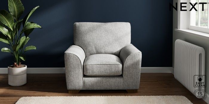 7.2.10 Stamford Grand Relaxed Sit Armchair Chunky Boucle Easy Clean Light Grey Square Angle - Mid | Made Click here to use our website with more accessibility support, for example screen readers