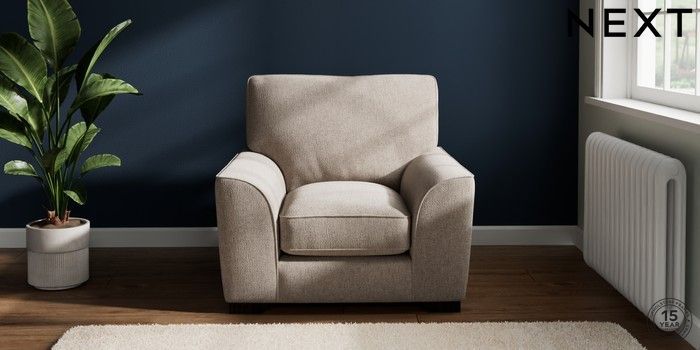 7.2.10 Stamford Grand Relaxed Sit Armchair Chunky Chenille Light Dove Square Angle - Dark | Made Click here to use our website with more accessibility support, for example screen readers