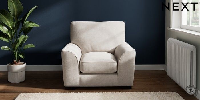 7.2.10 Stamford Grand Relaxed Sit Armchair Chunky Chenille Oyster Square Angle - Dark | Made Click here to use our website with more accessibility support, for example screen readers