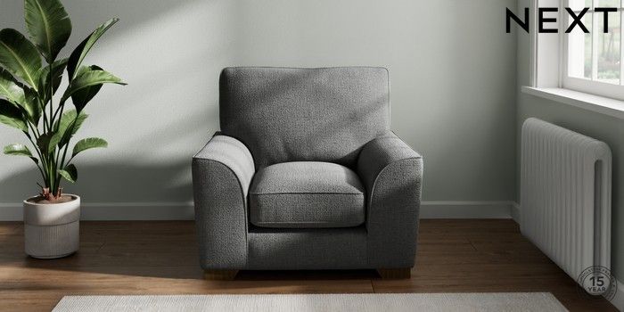7.2.10 Stamford Grand Relaxed Sit Armchair Chunky Texture Dark Grey Square Angle - Mid | Made Click here to use our website with more accessibility support, for example screen readers