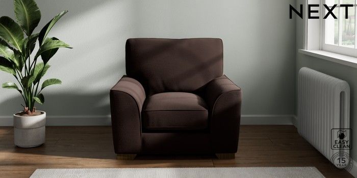 7.2.10 Stamford Grand Relaxed Sit Armchair Fine Chenille Easy Clean Chocolate Brown Square Angle - Mid | Made Click here to use our website with more accessibility support, for example screen readers