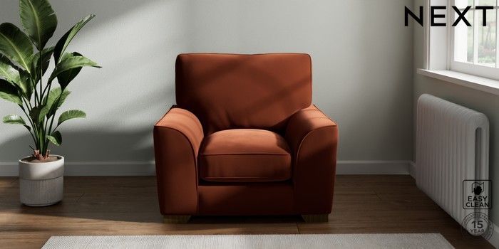 7.2.10 Stamford Grand Relaxed Sit Armchair Plush Velvet Easy Clean Ginger Orange Square Angle - Mid | Made Click here to use our website with more accessibility support, for example screen readers