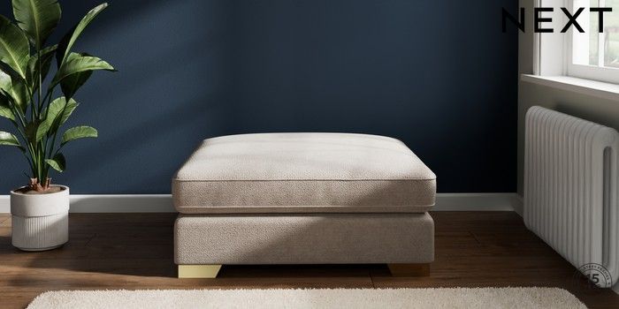 7.2.10 Stamford Grand Relaxed Sit Extra Large Footstool Boucle Chenille Light Natural Square Angle - Brushed Brass | Made Click here to use our website with more accessibility support, for example screen readers