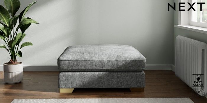 7.2.10 Stamford Grand Relaxed Sit Extra Large Footstool Chunky Boucle Easy Clean Mid Grey Square Angle - Brushed Brass | Made Click here to use our website with more accessibility support, for example screen readers