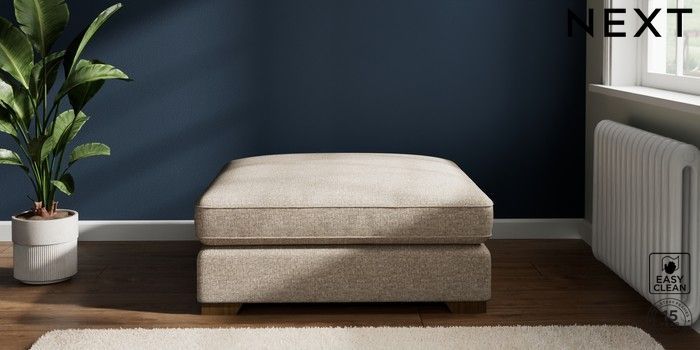 7.2.10 Stamford Grand Relaxed Sit Extra Large Footstool Chunky Boucle Easy Clean Mid Natural Square Angle - Mid | Made Click here to use our website with more accessibility support, for example screen readers