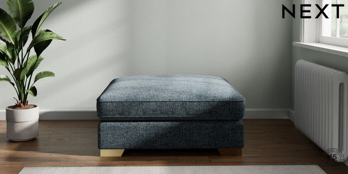 7.2.10 Stamford Grand Relaxed Sit Extra Large Footstool Chunky Chenille Dark Navy Blue Square Angle - Brushed Brass | Made Click here to use our website with more accessibility support, for example screen readers