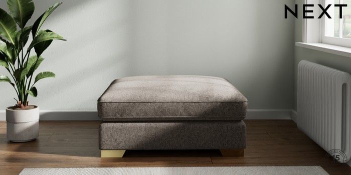 7.2.10 Stamford Grand Relaxed Sit Extra Large Footstool Chunky Chenille Mink Brown Square Angle - Brushed Brass | Made Click here to use our website with more accessibility support, for example screen readers