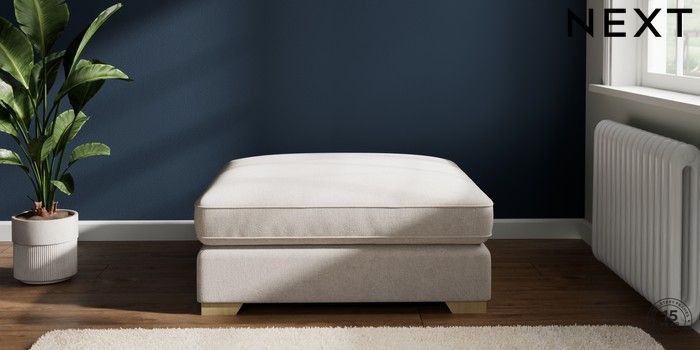 7.2.10 Stamford Grand Relaxed Sit Extra Large Footstool Chunky Chenille Oyster Square Angle - Light | Made Click here to use our website with more accessibility support, for example screen readers