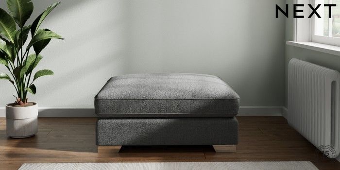 7.2.10 Stamford Grand Relaxed Sit Extra Large Footstool Chunky Texture Dark Grey Square Angle - Chrome Metal | Made Click here to use our website with more accessibility support, for example screen readers