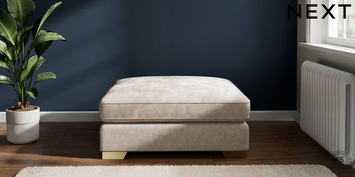 7.2.10 Stamford Grand Relaxed Sit Extra Large Footstool Distressed Velour Mid Natural Square Angle - Brushed Brass | Made Click here to use our website with more accessibility support, for example screen readers