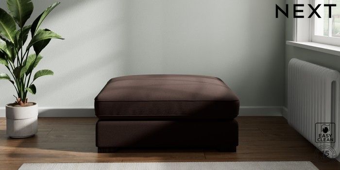 7.2.10 Stamford Grand Relaxed Sit Extra Large Footstool Fine Chenille Easy Clean Chocolate Brown Square Angle - Dark | Made Click here to use our website with more accessibility support, for example screen readers