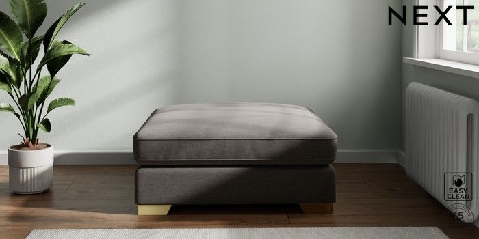 7.2.10 Stamford Grand Relaxed Sit Extra Large Footstool Fine Chenille Easy Clean Dark Smoke Grey Square Angle - Brushed Brass | Made Click here to use our website with more accessibility support, for example screen readers