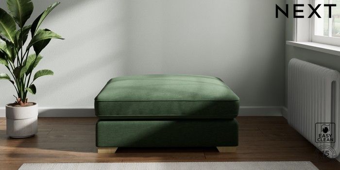 7.2.10 Stamford Grand Relaxed Sit Extra Large Footstool Fine Chenille Easy Clean Mid Khaki Green Square Angle - Light | Made Click here to use our website with more accessibility support, for example screen readers