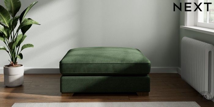 7.2.10 Stamford Grand Relaxed Sit Extra Large Footstool Luxe Chenille Dark Green Square Angle - Mid | Made Click here to use our website with more accessibility support, for example screen readers