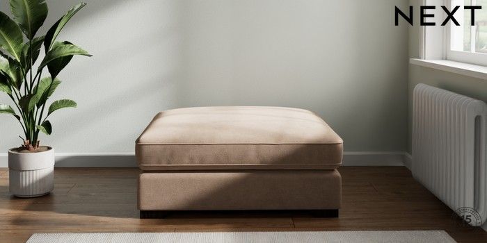 7.2.10 Stamford Grand Relaxed Sit Extra Large Footstool Luxe Chenille Mid Natural Square Angle - Dark | Made Click here to use our website with more accessibility support, for example screen readers