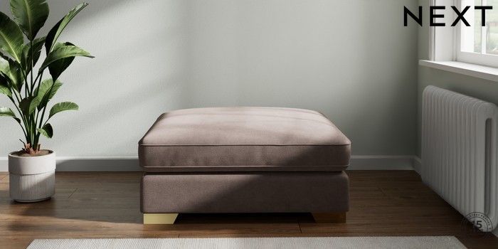 7.2.10 Stamford Grand Relaxed Sit Extra Large Footstool Luxe Chenille Mink Brown Square Angle - Brushed Brass | Made Click here to use our website with more accessibility support, for example screen readers