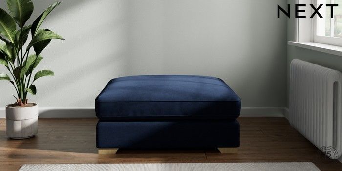 7.2.10 Stamford Grand Relaxed Sit Extra Large Footstool Luxe Chenille Navy Blue Square Angle - Light | Made Click here to use our website with more accessibility support, for example screen readers