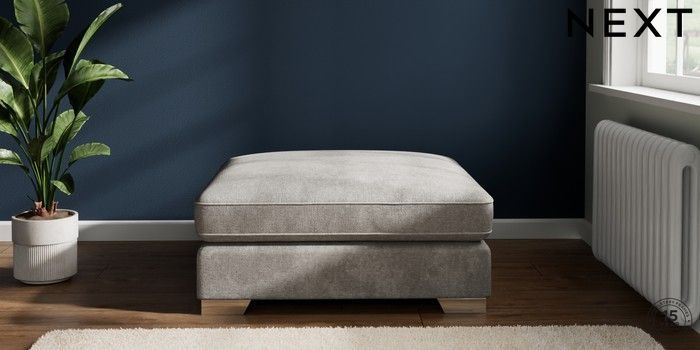 7.2.10 Stamford Grand Relaxed Sit Extra Large Footstool Plush Chenille Light Grey Square Angle - Chrome Metal | Made Click here to use our website with more accessibility support, for example screen readers