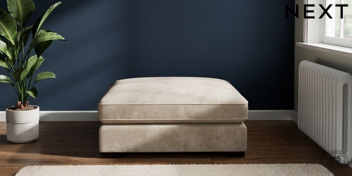 7.2.10 Stamford Grand Relaxed Sit Extra Large Footstool Plush Chenille Light Natural Square Angle - Dark | Made Click here to use our website with more accessibility support, for example screen readers