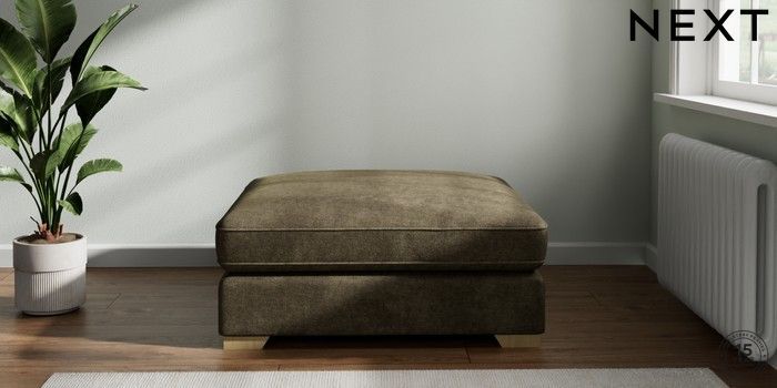 7.2.10 Stamford Grand Relaxed Sit Extra Large Footstool Plush Chenille Moss Green Square Angle - Light | Made Click here to use our website with more accessibility support, for example screen readers