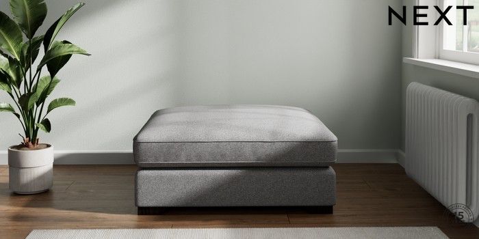 7.2.10 Stamford Grand Relaxed Sit Extra Large Footstool Studio Chenille Mid Grey Square Angle - Dark | Made Click here to use our website with more accessibility support, for example screen readers