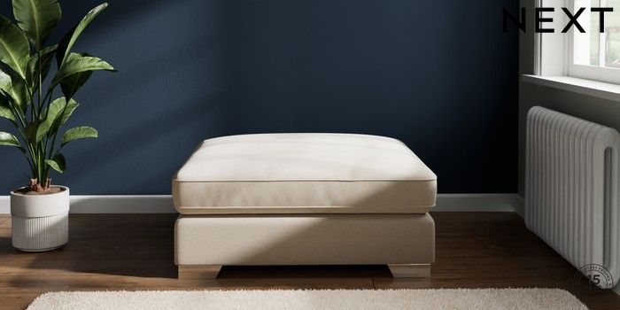 7.2.10 Stamford Grand Relaxed Sit Extra Large Footstool Studio Chenille Oyster Square Angle - Chrome Metal | Made Click here to use our website with more accessibility support, for example screen readers