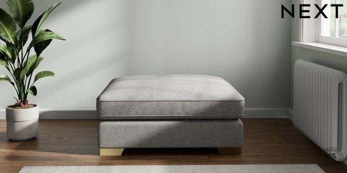 7.2.10 Stamford Grand Relaxed Sit Extra Large Footstool Tweedy Chenille Mid Grey Square Angle - Brushed Brass | Made Click here to use our website with more accessibility support, for example screen readers