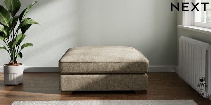 7.2.10 Stamford Grand Relaxed Sit Extra Large Footstool Woven Chenille Easy Clean Mid Natural Square Angle - Mid | Made Click here to use our website with more accessibility support, for example screen readers