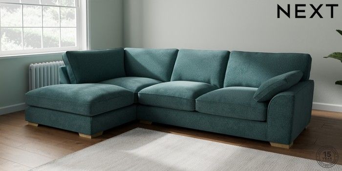 7.2.10 Stamford Grand Relaxed Sit Large Corner Chaise - Left Hand Chunky Chenille Mid Teal Green Large Square Angle - Light | Made Click here to use our website with more accessibility support, for example screen readers