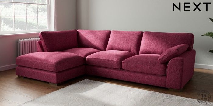 7.2.10 Stamford Grand Relaxed Sit Large Corner Chaise - Left Hand Cotswold Chenille Dark Raspberry Pink Large Square Angle - Mid | Made Click here to use our website with more accessibility support, for example screen readers