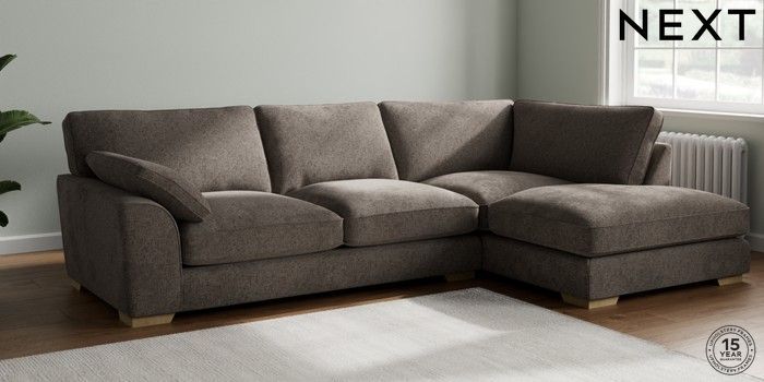 7.2.10 Stamford Grand Relaxed Sit Large Corner Chaise - Right Hand Chunky Chenille Mink Brown Large Square Angle - Light | Made Click here to use our website with more accessibility support, for example screen readers