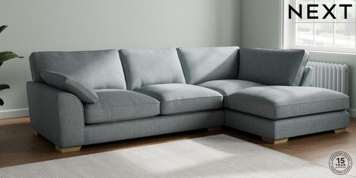 7.2.10 Stamford Grand Relaxed Sit Large Corner Chaise - Right Hand Chunky Weave Mid Blue Large Square Angle - Light | Made Click here to use our website with more accessibility support, for example screen readers