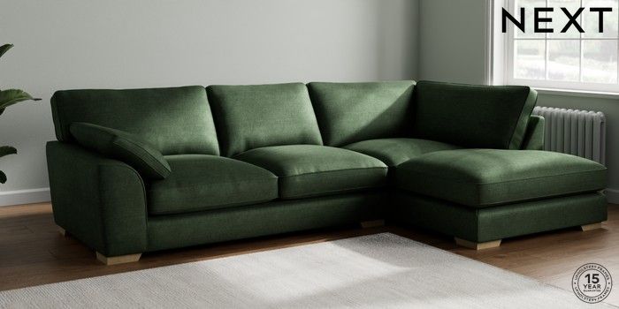 7.2.10 Stamford Grand Relaxed Sit Large Corner Chaise - Right Hand Luxe Chenille Dark Green Large Square Angle - Light | Made Click here to use our website with more accessibility support, for example screen readers