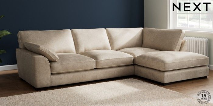 7.2.10 Stamford Grand Relaxed Sit Large Corner Chaise - Right Hand Plush Chenille Light Natural Large Square Angle - Dark | Made Click here to use our website with more accessibility support, for example screen readers