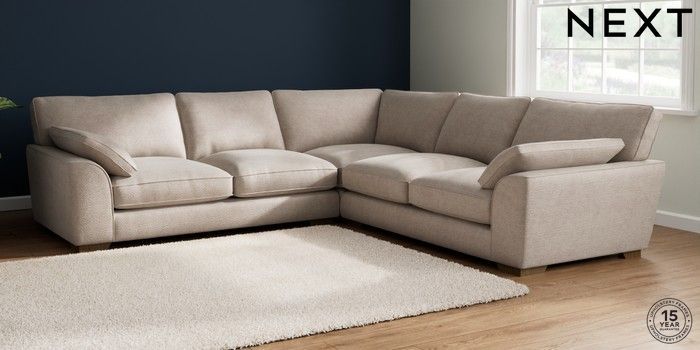7.2.10 Stamford Grand Relaxed Sit Large Corner Sofa - Universal Boucle Chenille Light Natural Large Square Angle - Mid | Made Click here to use our website with more accessibility support, for example screen readers