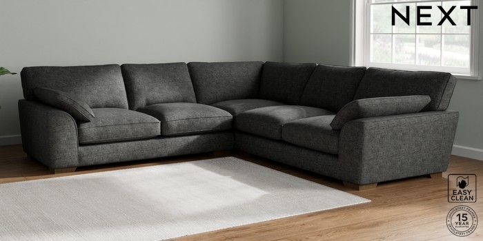 7.2.10 Stamford Grand Relaxed Sit Large Corner Sofa - Universal Boucle Weave Easy Clean Charcoal Grey Large Square Angle - Mid | Made Click here to use our website with more accessibility support, for example screen readers