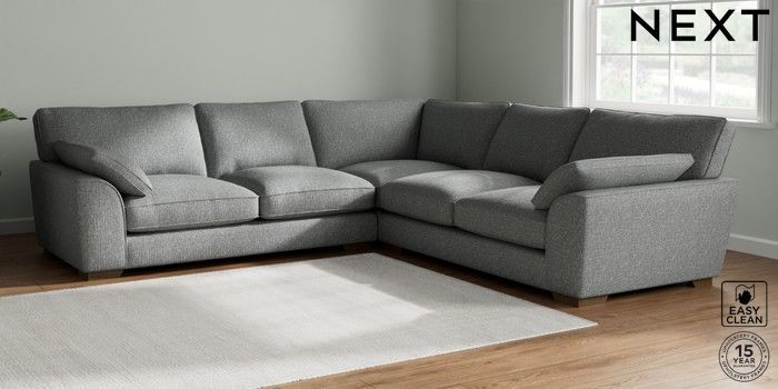 7.2.10 Stamford Grand Relaxed Sit Large Corner Sofa - Universal Chunky Boucle Easy Clean Mid Grey Large Square Angle - Mid | Made Click here to use our website with more accessibility support, for example screen readers