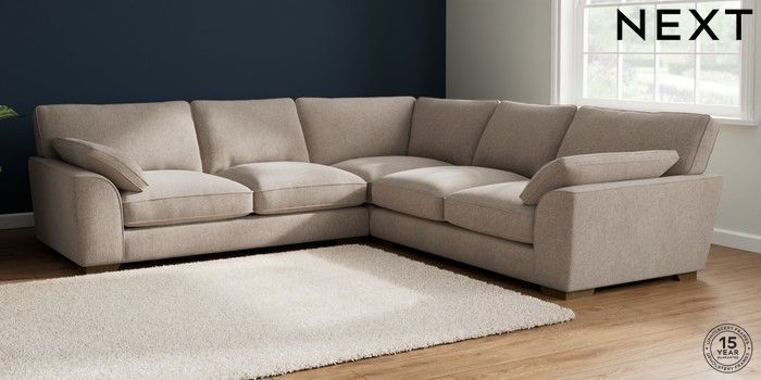7.2.10 Stamford Grand Relaxed Sit Large Corner Sofa - Universal Chunky Chenille Light Dove Large Square Angle - Mid | Made Click here to use our website with more accessibility support, for example screen readers