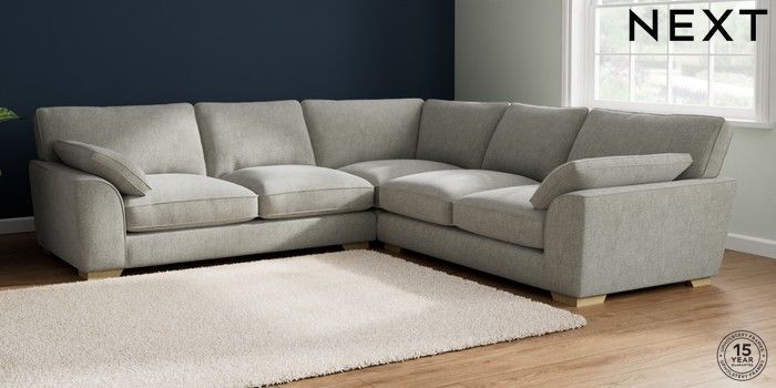 7.2.10 Stamford Grand Relaxed Sit Large Corner Sofa - Universal Chunky Chenille Light Grey Large Square Angle - Light | Made Click here to use our website with more accessibility support, for example screen readers