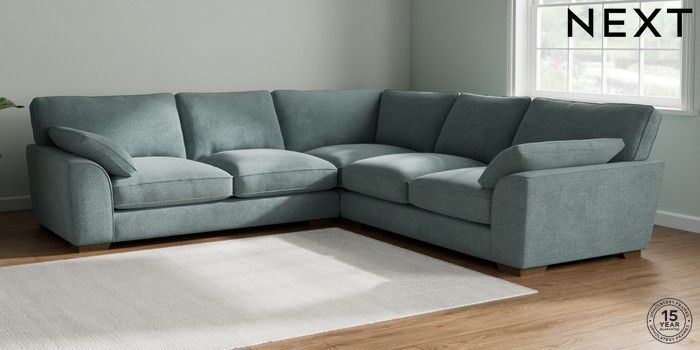 7.2.10 Stamford Grand Relaxed Sit Large Corner Sofa - Universal Chunky Chenille Light Teal Green Large Square Angle - Mid | Made Click here to use our website with more accessibility support, for example screen readers